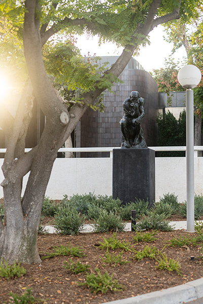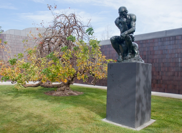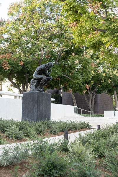 For the past 25 years, Auguste Rodin’s The Thinker has occupied a prominent place on the south lawn of the Museum’s campus facing Colorado Boulevard. Although this location is advantageous during the Rose Parade, when the parade route passes by the south facade of the building, Museum staff noticed that visitors often overlooked the sculpture, which could only be accessed by walking through the grass around the perimeter of the building.